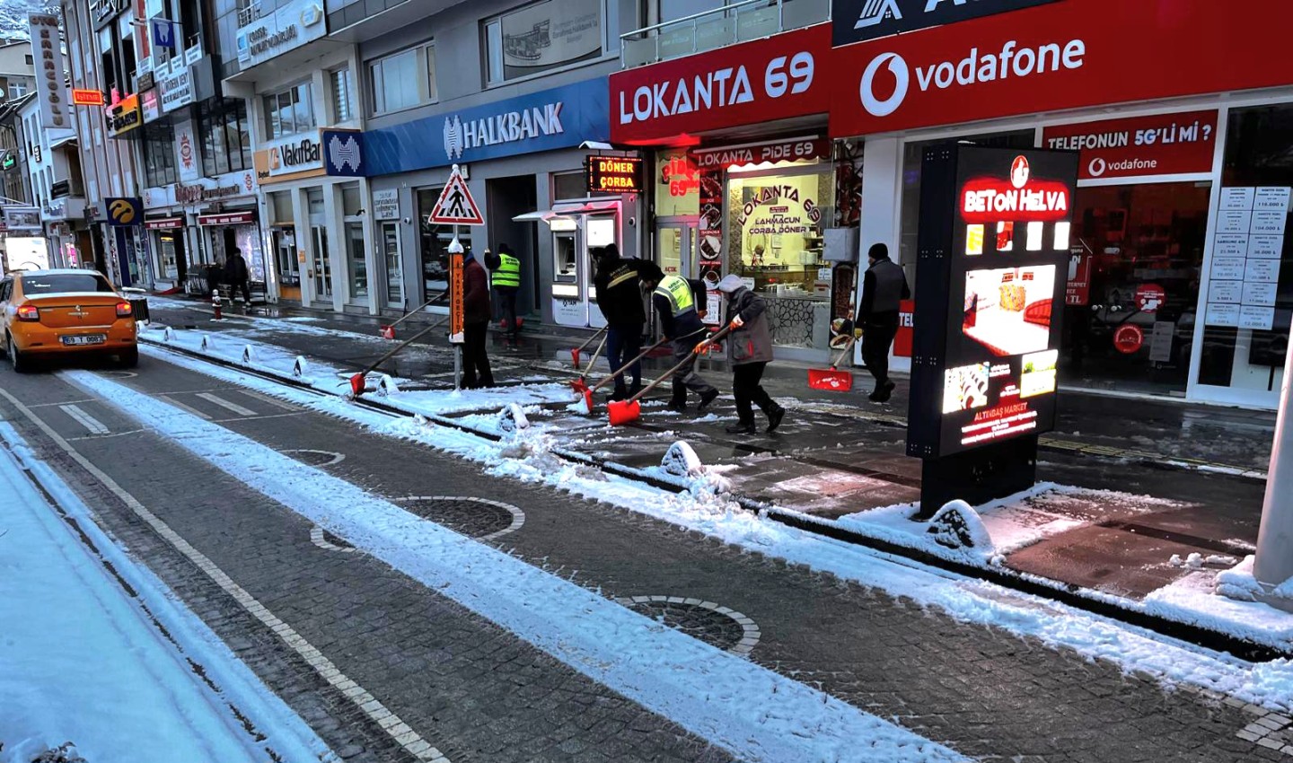 Gece boyunca aralıksız devam eden çalışmalar, gündüz saatlerinde de hız kesmeden sürüyor. Belediye ekiplerimiz, ana yolların yanı sıra ara sokaklar, kaldırımlar ve merdivenlerde kar küreme çalışmaları yaparak şehir genelinde ulaşımın ve günlük yaşamın aksamaması için yoğun çaba gösteriyor.