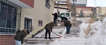 Kar kalınlığının yer yer 20 cm yi bulduğu şehirde ayrıca araç ve yaya trafiğinin olumsuz etkilenmemesi için yoğun çaba sarf eden ekiplerimizin bir kısmı da şehrin en işlek caddesi olan Cumhuriyet Caddesi'nde bulunan kaldırımlarda kar küreme çalışması yaparken bir diğer ekipte mahallelerden şehre inen merdivenlerde kar temizliği yapıyor.