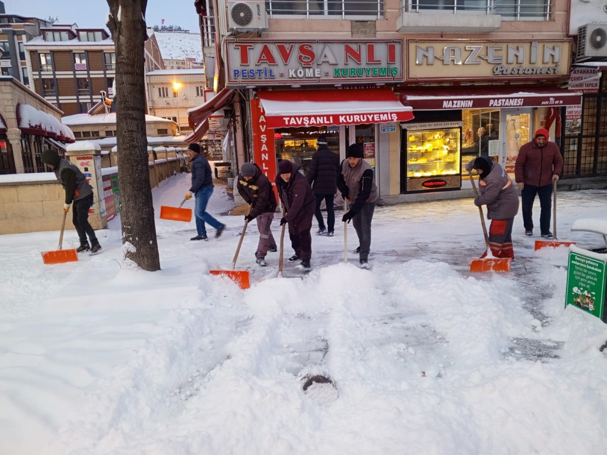Gece boyu devam eden karla mücadele çalışmaları, gündüz saatlerinde de hız kesmeden sürdü. Ekiplerimiz bir yandan kaldırımlar ve merdivenlerde kar küreme çalışmaları yaparken, diğer yandan farklı noktalarda kar temizliği ve tuzlama faaliyetlerine devam ediyor.