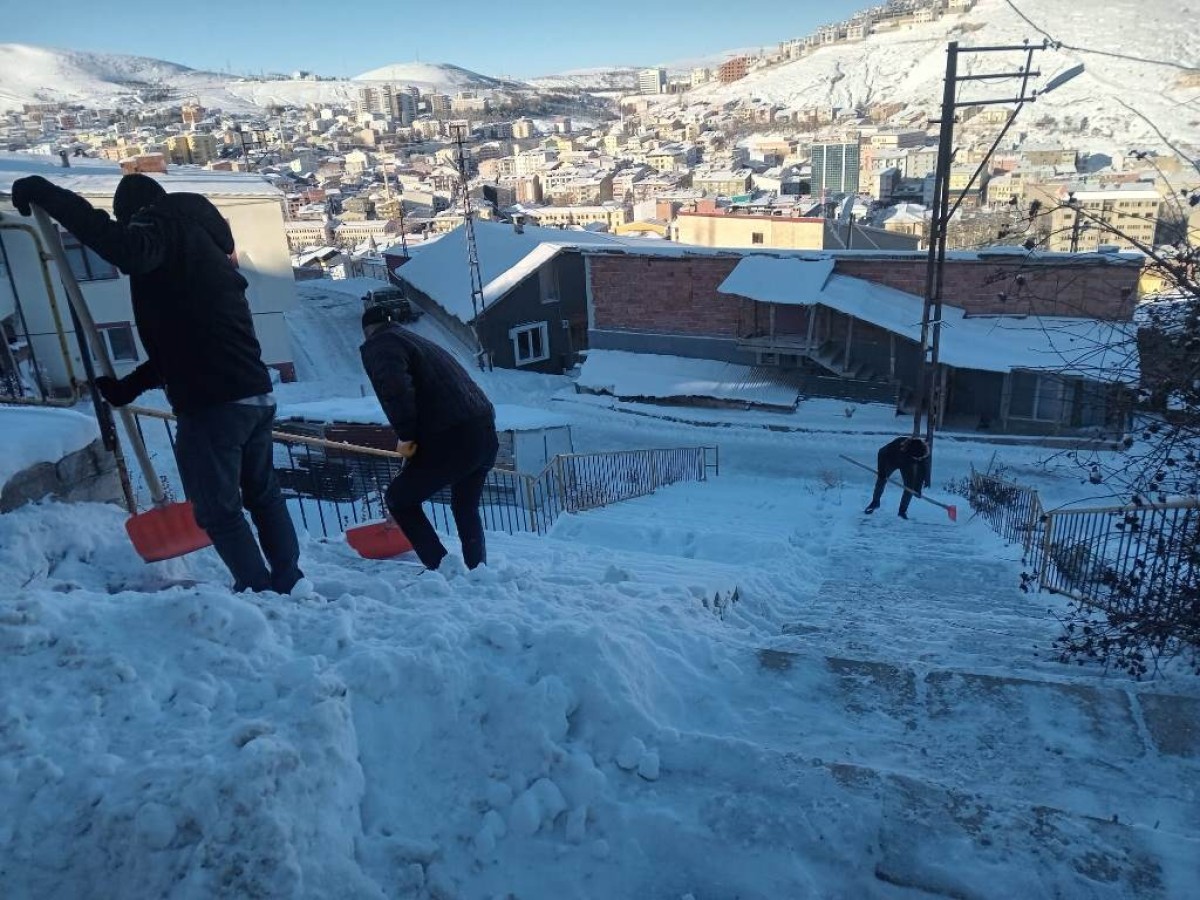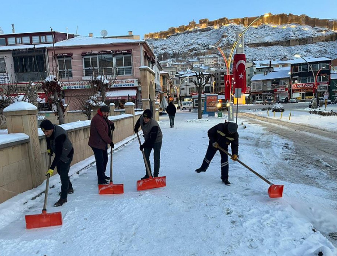 Gece boyunca devam eden çalışmalar, gündüz saatlerinde de hız kesmeden sürdü. Belediye ekiplerimiz; ana yolların yanı sıra ara sokaklar, kaldırımlar ve merdivenlerde kar küreme çalışmaları yaparak şehir genelinde ulaşımın ve günlük yaşamın aksamaması için yoğun çaba harcıyor.