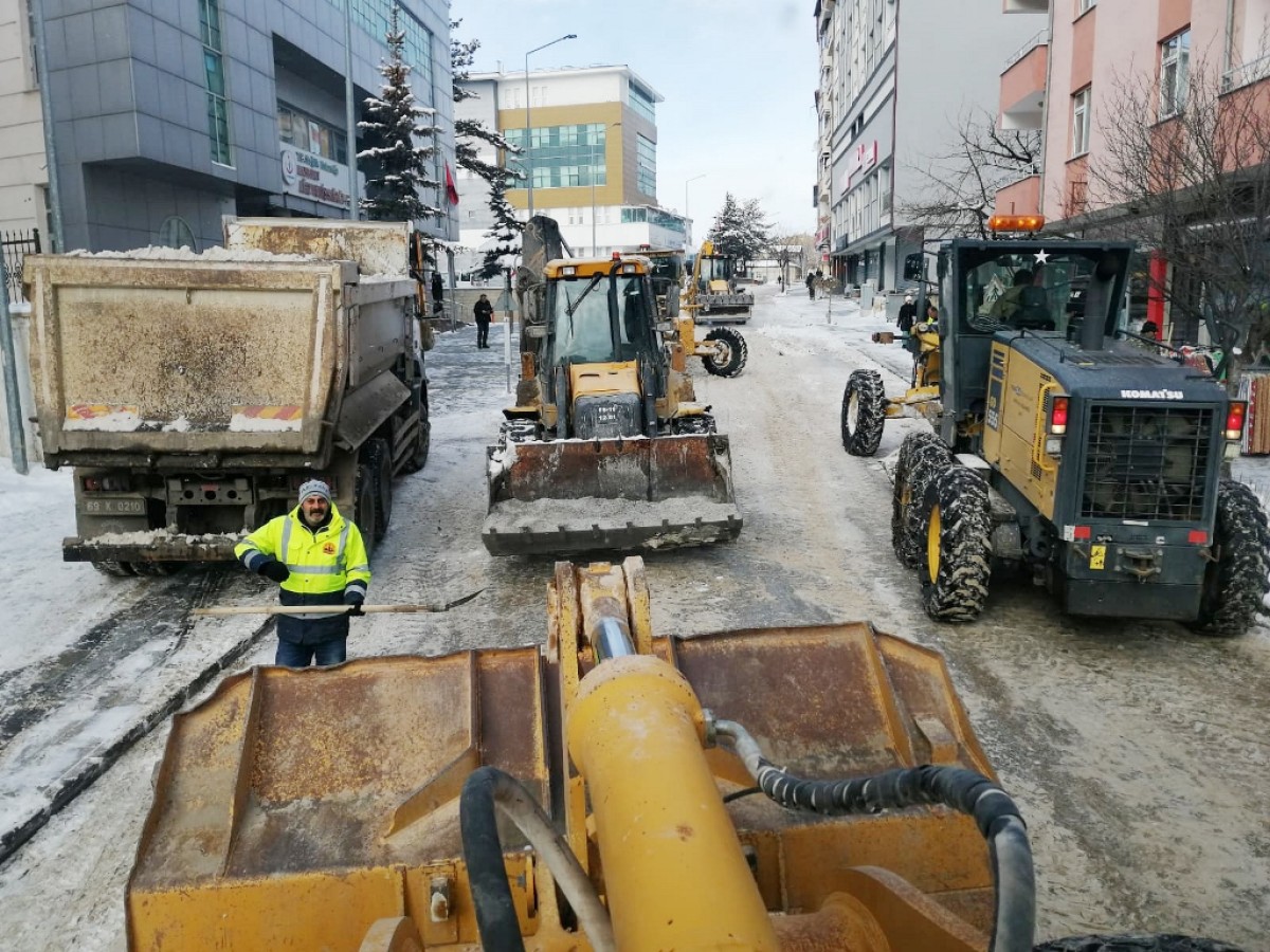 Kar yağışının başladığı ilk andan itibaren teyakkuzda olan ekiplerimiz, günlük yaşamın aksamaması ve olumsuzlukların önüne geçilmesi için sahada özveriyle görev yapıyor. Ana arterler başta olmak üzere cadde ve sokaklarda kar küreme ve tuzlama çalışmaları gerçekleştirilirken, yağışın ardından biriken karların temizlenmesine ağırlık verildi. Şehir merkezindeki kaldırımlar, merdivenler, yaya yolları ve ortak kullanım alanlarında da eş zamanlı temizlik çalışmaları yürütülüyor.