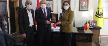 Ziyaretten duyduğu memnuniyeti dile getiren Başkan Memiş İşliyen ve berberindeki heyete teşekkür ederek çalışmalarında başarı temennisinde bulundu ve Bayburt saat kulesi biblosu hediye etti.