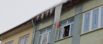 Kar kalınlığının 120 santimetreyi bulduğu ve sıcaklıkların gece eksi 15’lere kadar düştüğü şehrimizde, Belediyemiz bina saçaklarındaki tehlike oluşturan buz sarkıtlarını düşürme çalışması başlattı.